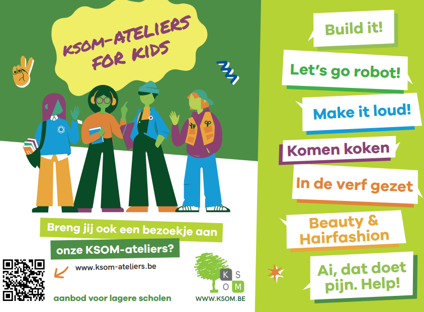KSOM is een innoverende scholengemeenschap met een ruim aanbod aan technische en beroepsgerichte opleidingen. Met onze "KSOM-ateliers for kids" zetten wij onze deuren open voor leerlingen van het vijfde en zesde leerjaar en bieden we workshops op maat van de leerlingen uit de lagere school.