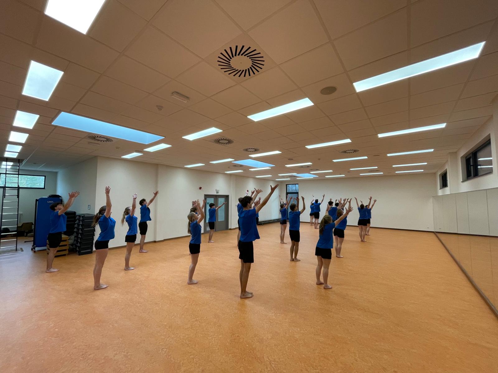 Aan het begin van dit schooljaar, gingen onze collega’s aan de slag in de splinternieuwe sporthal 6. Die wordt voornamelijk voor het vak ritmiek gebruikt. Mieke Delbroek, leerkracht dans, is erg enthousiast over de nieuwe accommodatie. “We hebben onze eigen inkom, langs de ijzeren trap, en de kleedkamers zijn erg ruim en gerieflijk. Verder zijn er vaste spiegels aan twee kanten van de zaal, dus hoeven we nooit meer te sleuren met spiegels op wieltjes. De verlichting is dimbaar en de hele ruimte is erg stijlvol ingericht. Het is stukken aangenamer voor mij, en ook voor de leerlingen, om hier te komen dansen.”